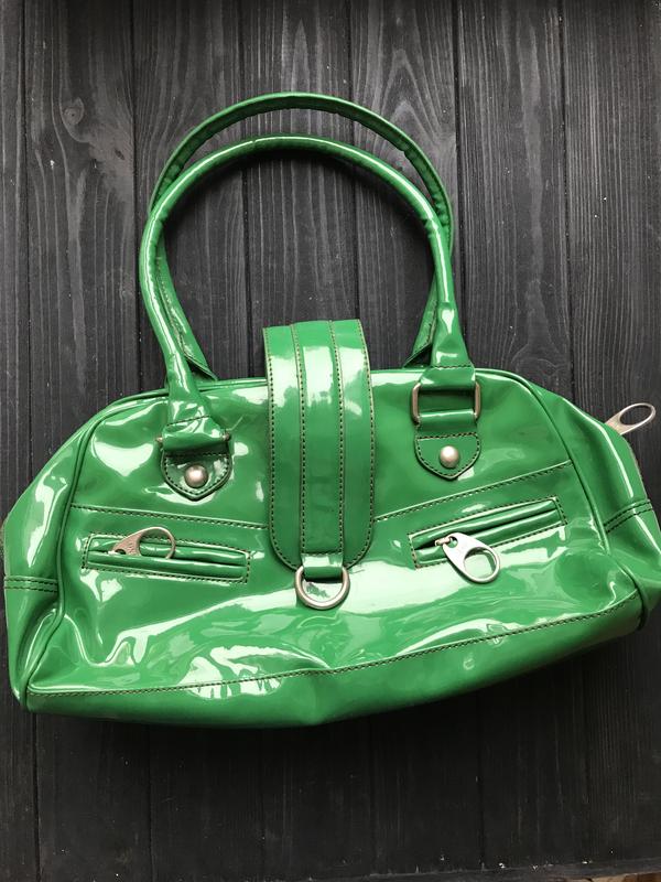 зеленая лаковая сумка Mango. Очень модный цвет. Идеальное состояние, без потертостей