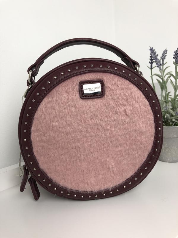 Модная суперклассная сумочка от David Jones цвет: бордо/розовый диаметр: 19 см ширина: 8 см материал: кожзам жесткость: средней плотности, держит форму тип застежки: молния отделение: одно отделение ручка: в комплекте длинная ручка (регулируется) фото реальные
