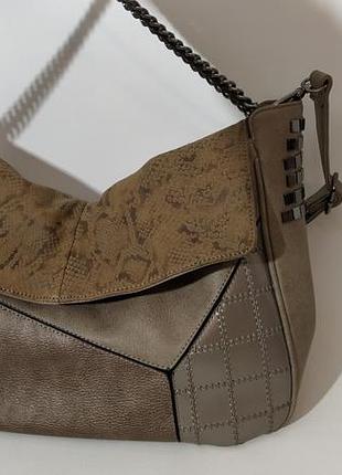 Дуже гарна сумочка, з двома видами ручок. Багато кишень. Мерочки: Ширина по денця 47/17; Висота 26; Довжина ручки 125; Довжина ланцюжка 48.