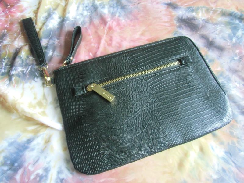 Большой клатч плоский ! Замеры высота 19 см , ширина 28 см , одно отделение на молний , в середине три кармашка , одно на молний ! Спереди есть кармашек на молний ! Фурнитура золото , есть маленький ремень для носки на запястье ! Длинного ремня нет !
