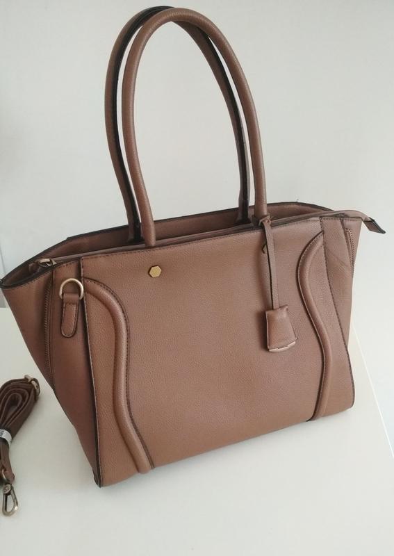 Очень прочная сумка. Нюанс на фото Размер Ширина 44/32 Высота 25 дно ширина 14 Высота ручек 22 в комплекте длинный ремешок