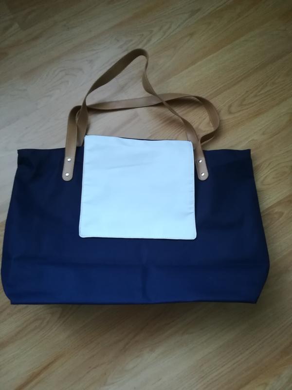 Сумка шопер, дорожня, пляжна, дуже містка. Висота 33 см, ширина 55 см, ширина дна 15 см, полудлина ручки 31 див. Застібається на блискавку, всередині кишеня на блискавці, і косметичка на паску.