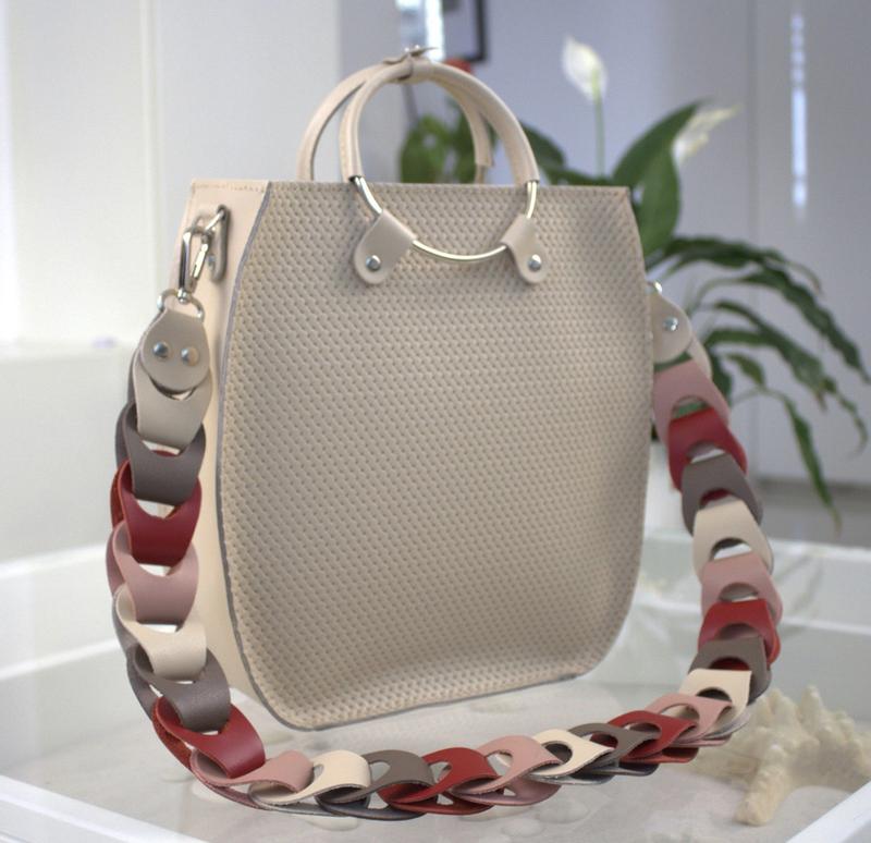 Женская кожаная сумка. Особенность этой сумки в необычной форме и ещё более необычном длинном ремне. Тип застежки: Молния Отделения: 1 основное, внутренний карман на молнии. Размеры: 26*27*8 см.