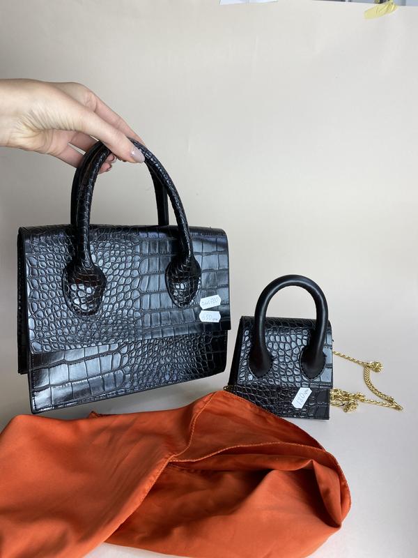 Новинка 2 Велика ⚫Сумка под бренд ⚫Цена :700 грн ⚫Размер:17Х21 ⚫Материал : экокожа ⚫Описание: одно большие отделение длинная ручка в комплекте ⚫Цвет черный принт под рептилию Маленькая Размер 10Х10