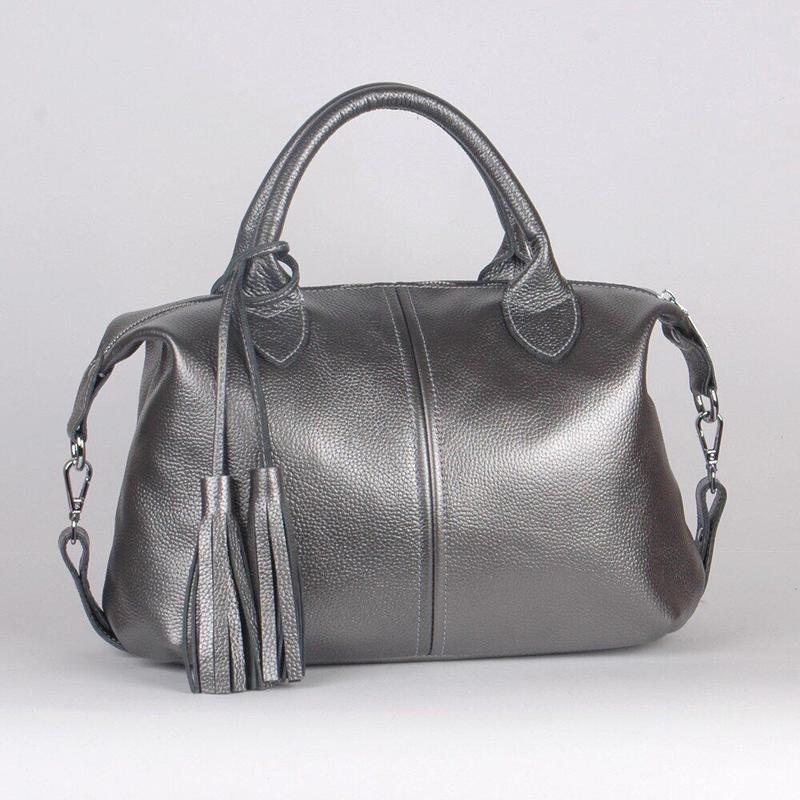 Сумка из натуральной кожи, цвет-никель, украшена кисточками💜 ⠀ ✅Закрывается на молнию ⠀ ✅Внутри сумки: 2 основных отделения, карманы для мелочей, карман-перегородка на молнии, потайной карман, карман с обратной стороны на молнии. ⠀ ✅Размеры (Д x Ш x В): 40х14.5х25см ⠀ ✅Две короткие ручки и сьемный плечевой ремень. ⠀ 🌈Цвет: красный, черный, пудра, белый, виноградный, никель, зеленый, фиалковый
