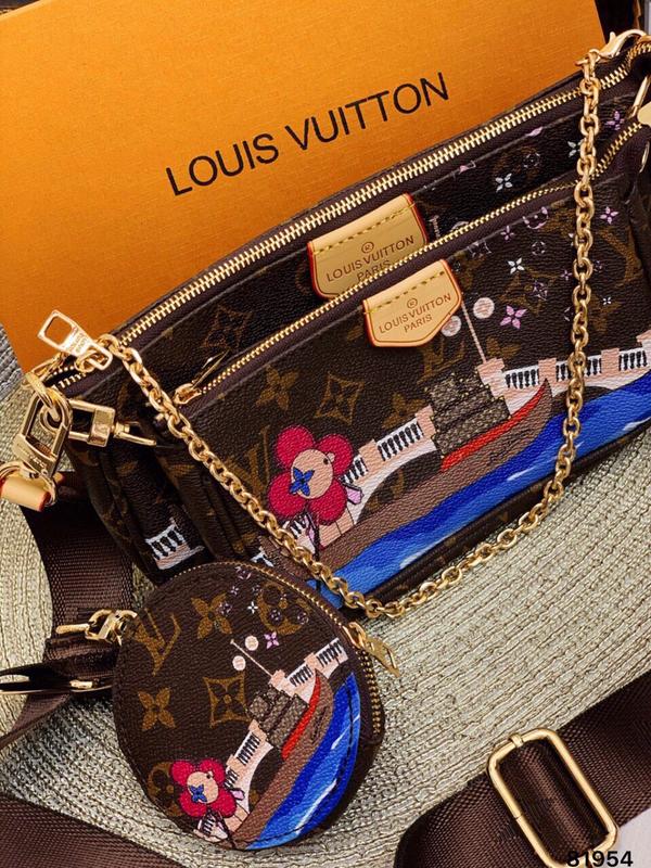 Сумка 3 в 1 цветная - люкс модель! идёт в коробке и пыльнике и пакете с лого ❗️ Расцветки: ❤️ монограмм с шоколадным ремешком ремешок регулируется в наличии и цепочка фурнитура с логотипами, внутри и снаружи ЛОГОтипы Материал: канва - люкс качество! Размеры :24/13 и 19/11 Брелок в комплекте