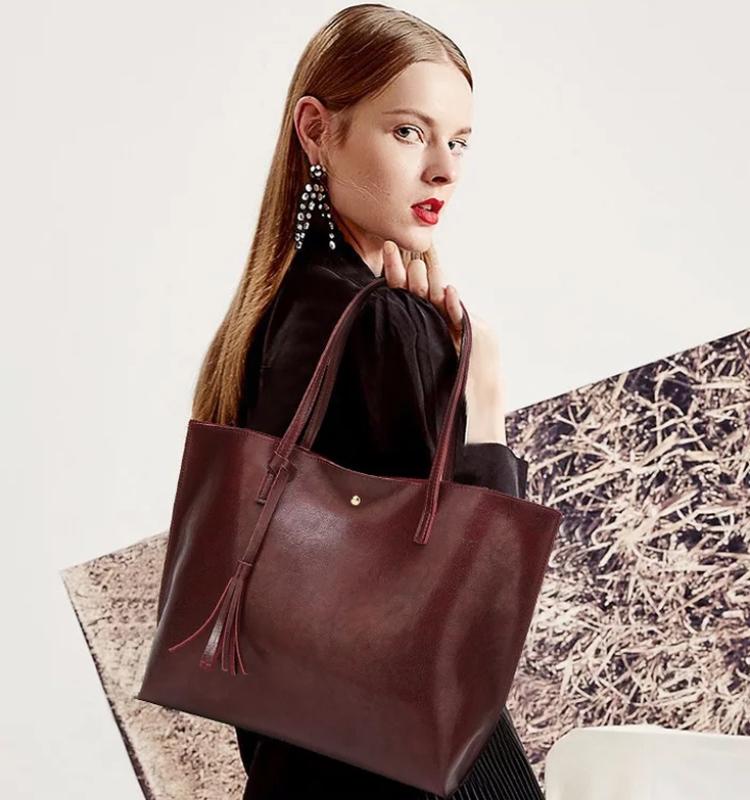 Большая женская сумка. Сумка высокого качества. Женская сумка из искусственной кожи, модная сумка на плечо или в руку, классическая. Цвет: Бордо. Размер: 36х30х11см.