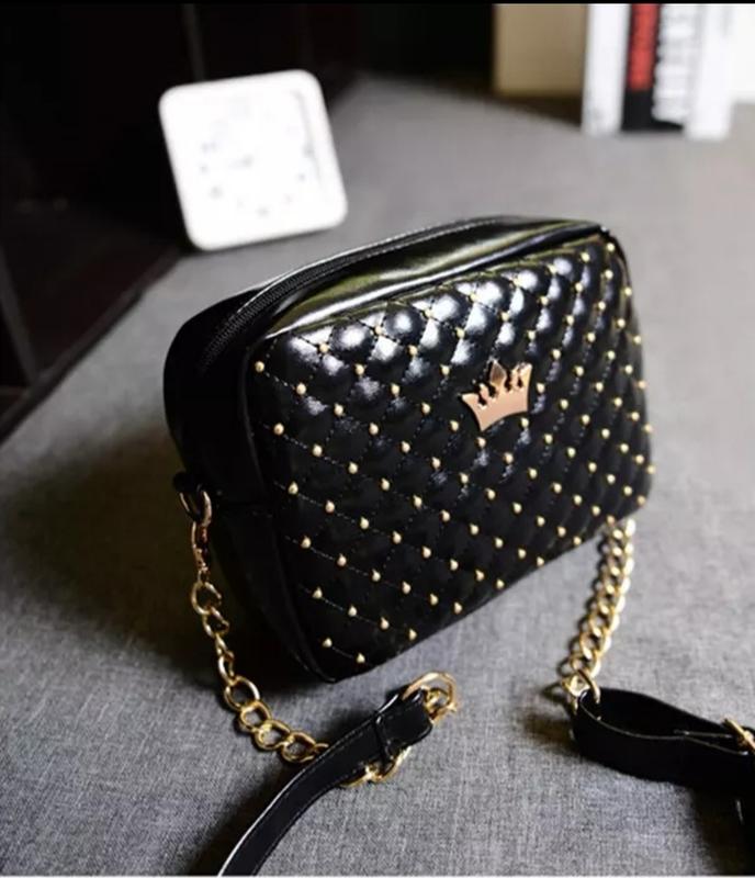 Лицевая часть сумки украшена стразами и короной. Очень стильная вещь. Имеет 1 длинную ручку, одно отделение на молнии, 1 карман на молнии. Выглядит классно, мягкая на ощупь, вмещается все необходимое, что надо современной девушке. Женская сумка клатч стеганная - кож.зам. Длина 22 см Высота 15 см Ширина по дну 8 см