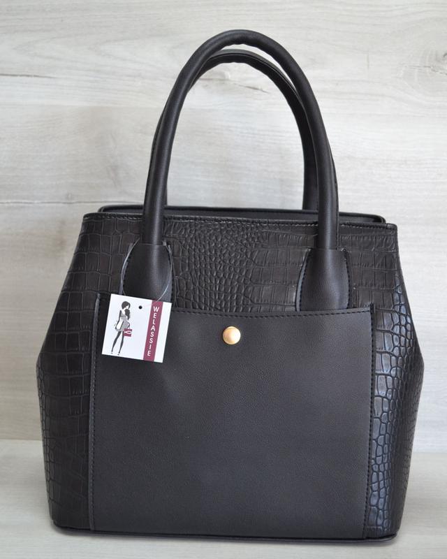 🔥 Сумка с карманом на кнопке черный крокодил 🔥 🔺 Арт. 54403-489 ▪ Материал: эко-кожа ▪ Цвет: черный ▪ Размеры: средний ▪ Жесткость: средняя ▪ Тип застежки: молния ▪ Отделения: 1 отделение ▪ Плечевой ремень: нет ▪ Длина: 30 см. ▪ Ширина: 15 см. ▪ Высота: 27 см. ▪ В наличии!