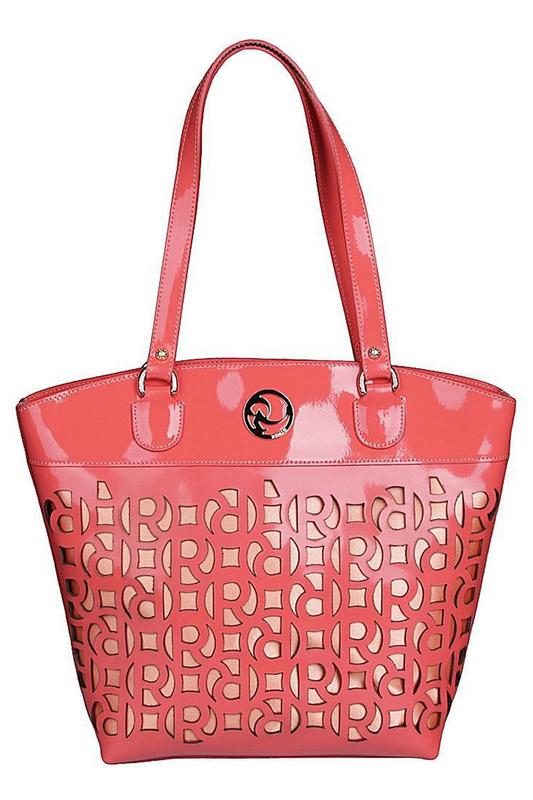 Грандиозная распродажа!Летняя сумка из натуральной,лаковой кожи,красивого кораллового цвета.Ручки на плечо.Под формат А4.Перфорация на коже,с логотипом бренда Ripani.