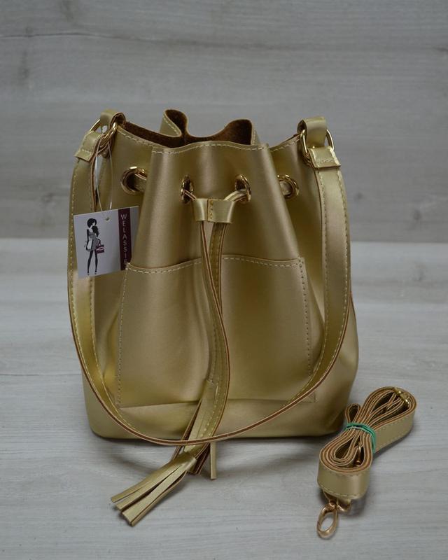 🔥 Молодіжна сумка з еко-шкіри золотого кольору 🔥 🔺 Арт. 23107-489 ▪ Матеріал: еко-шкіра ▪ Колір: золотий ▪ Розміри: середній ▪ Жорсткість: м'яка ▪ Тип застібки: застібка ▪ Відділення: додаткова сумка-клатч ▪ Плечовий ремінь: є ▪ Довжина: 23 див. ▪ Ширина: 14 див. ▪ Висота: 24 див. ▪ У наявності!