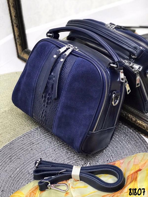 81807 Сумка чемоданчик крокодил замш кожа👜 Размер: 24/18 Материал:натуральная кожа и натуральный замш Цвет: синий Длинный ремешок в коже регулируется и удобная ручка , фурнитура в серебре Форму держит супер 2 отдела 👍