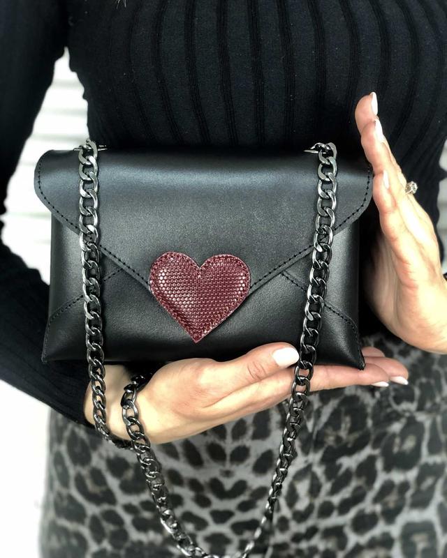 🔥 Кожаная сумка клатч с черного цвета с бордовым сердечком 🔥 🔺 Арт. K6017-489 ▪ Материал: кожа ▪ Цвет: черный ▪ Размеры: маленький ▪ Жесткость: мягкая ▪ Тип застежки: магнит ▪ Отделения: 1 отделение ▪ Плечевой ремень: да ▪ Длина: 19 см. ▪ Ширина: 6 см. ▪ Высота: 13 см. ▪ В наличии!