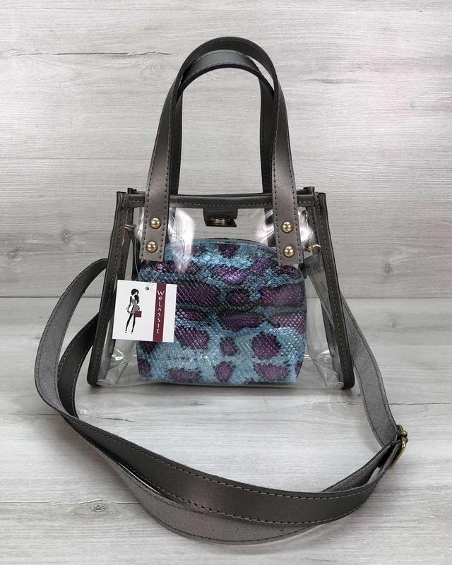 🔥 Маленька силіконова сумка синя 🔥 🔺 Арт. 58204-489 ▪ Матеріал: кожзам ▪ Колір: блакитний з металіком ▪ Розміри: маленький ▪ Жорсткість: середня ▪ Тип застібки: магніт ▪ Відділення: 1 відділення+косметичка ▪ Плечовий ремінь: є ▪ Довжина: 18 див. ▪ Ширина: 8 див. ▪ Висота: 17 див. ▪ В наявності