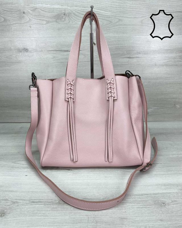 🔥 Кожаная женская сумка-шоппер пудра 🔥 🔺 Арт. K2028-489 ▪ Материал: кожа ▪ Цвет: пудра ▪ Размеры: средний ▪ Жесткость: мягкая ▪ Тип застежки: магнит ▪ Отделения: 1 отделение, косметичка ▪ Плечевой ремень: есть ▪ Длина: 30 см. ▪ Ширина: 16 см. ▪ Высота: 27 см. ▪ В наличии!