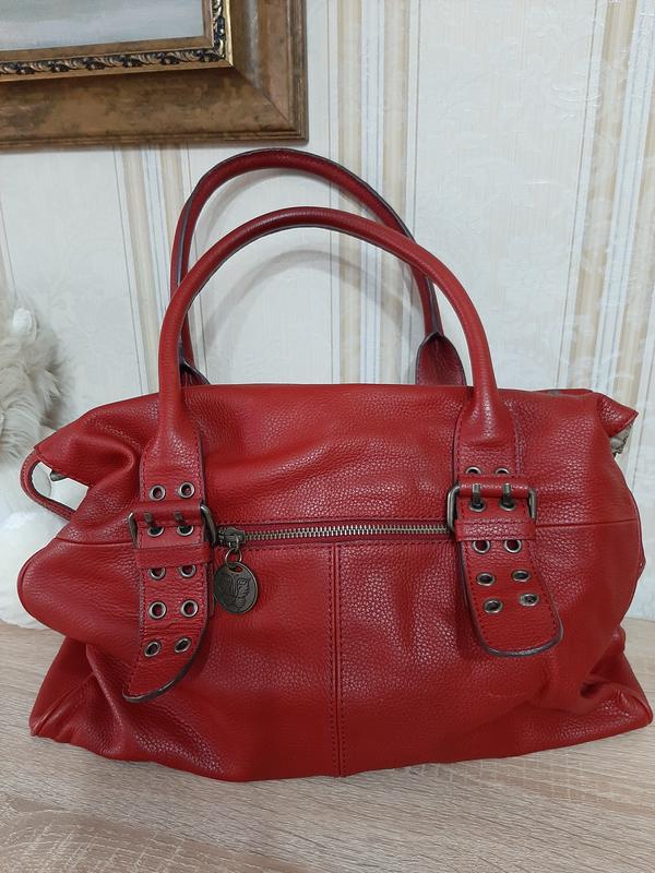 Шикарная кожаная сумка без нюансов, фурнитура очень красивая. дно 38,5х12,5; высота 29, ширина 39 , бока 14. В реале красный чуть темнее...красивый благородный алый