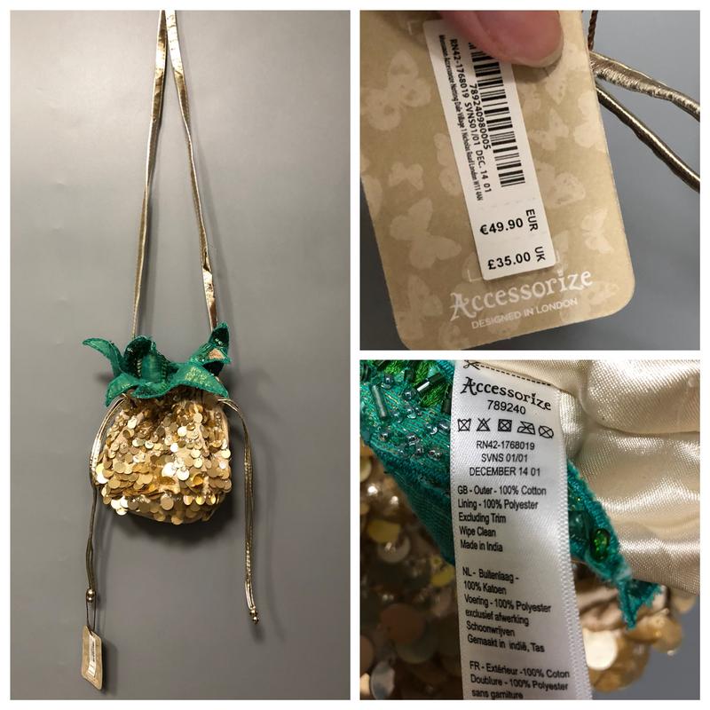 ТОРГА НЕТ, тем более если цена уже снижена Не забывайте про комиссию сайта, которую я плачу ❗ ____________________________________________ ВЕЩИ ПЕРЕЗАГРУЖАЮ! Подпишись на аккаунт ☑️чтобы не потерять понравившийся товар! ___________________________________ Для ПОКУПКИ пишите пожалуйста лично, через кнопку "КУПИТЬ"❎ заказы не принимаю ❗❗❗ _____________________________________ Новая с биркой, яркая блестящая сумка accessorize pineapple bag расшита бисером и крупными пайетками. Ценник €49 Верх - 100% хлопок, внутри - полиэстер !!! Обратите внимание на последнее фото. В цене этот незначительный нюанс учтен __________________ Смотрите также другие мои объявления и подписывайтесь на обновления.