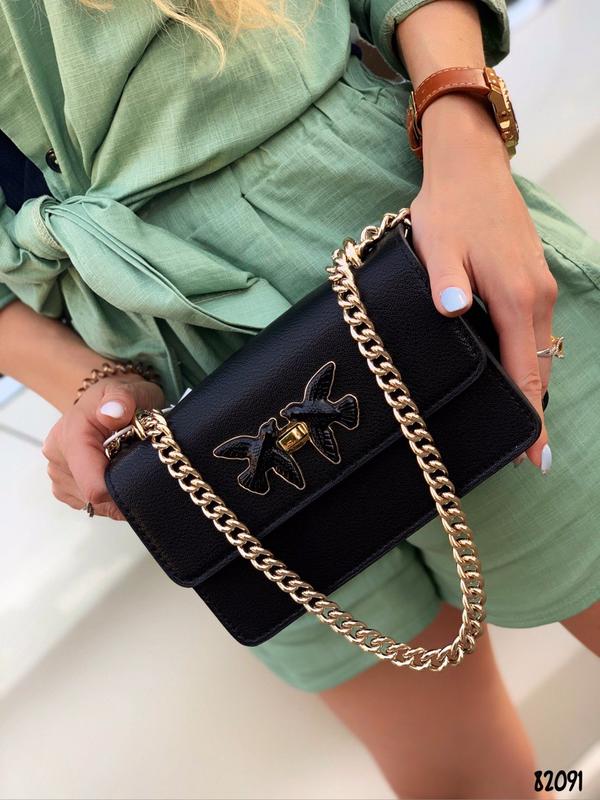 82091 Новинка ❣️❣️❣️❣️ Только у нас Сумка птичка Кожа Люкс 🔥🔥🔥 Цвет: ❤️чёрная Материал: натуральная кожа люкс качество 👍👍👍 В комплекте пыльник , коробка пакет ( цепоча-ремешок) фурнитура в золоте , подкладка вся с логотипами - полный Люкс ❗️ Размер: 22/15