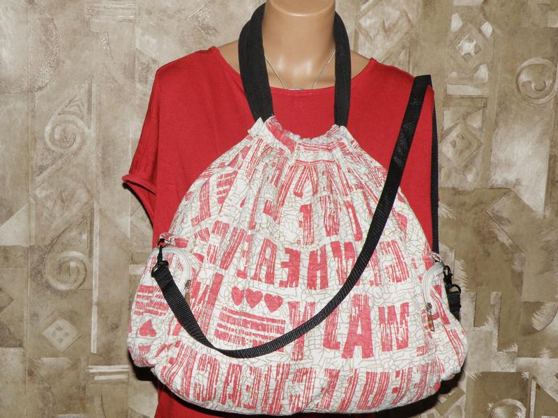 котоновая, вместительная сумка можно носить как с короткими ручками, так и с пристегнутой длинной, регулируемой тканевой