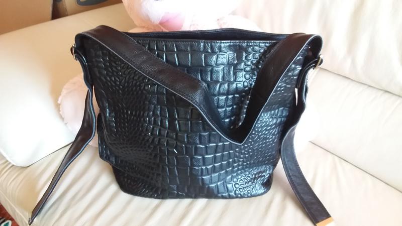 Шикарная сумка,натуральная кожа с фактурой,ручка регулируется на пряжках.Ширина 36см,высота 31см.
