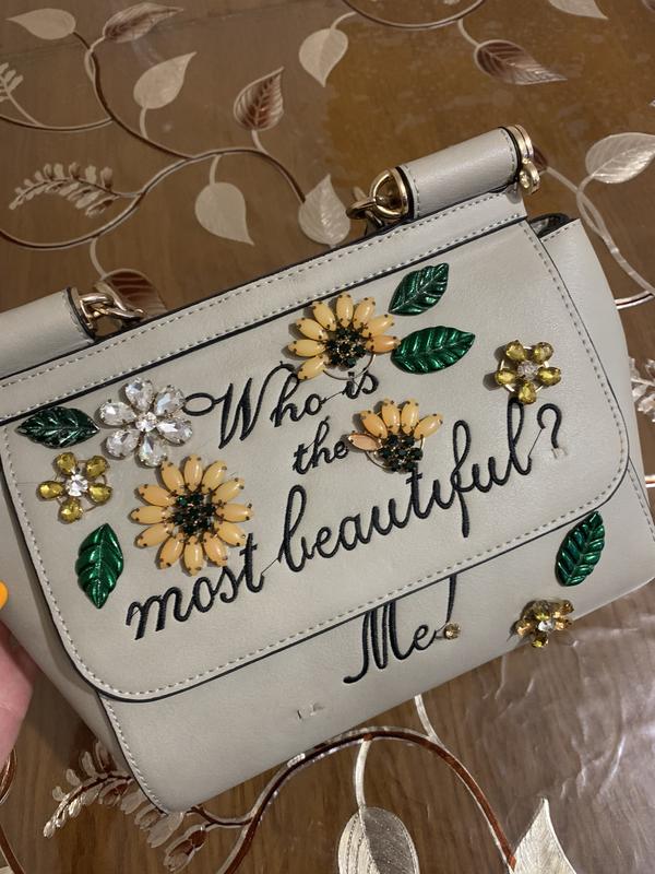 Натуральная кожа, очень красивая сумка, на некоторых цветах отпали камни, можно купить и поставить. Покупала за 7 тысяч.