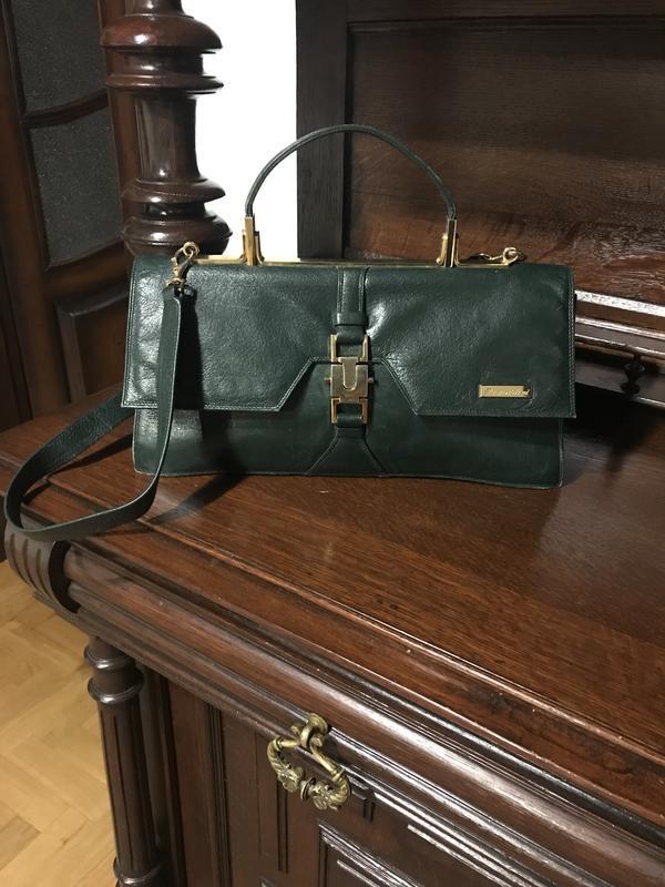 Винтажная сумка Demartini. Всегда актуальная и с каждым годом только растёт в цене. Дорогой бренд,состояние отличное-следы носки минимальные,учитывая время выпуска. Добротная кожа бутылочного цвета. Внутри кожа -чёрная,фурнитура-золота. Размер 8*18*35 Ручка-86 Внутри 2 отдела и1 внутренний карман.