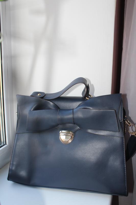 синяя сумка с бантом кожзам была в эксплуатации пару раз. высота 27 см , глубина 12 см, ширина 32-35 см(трапеция) материал кожзам.