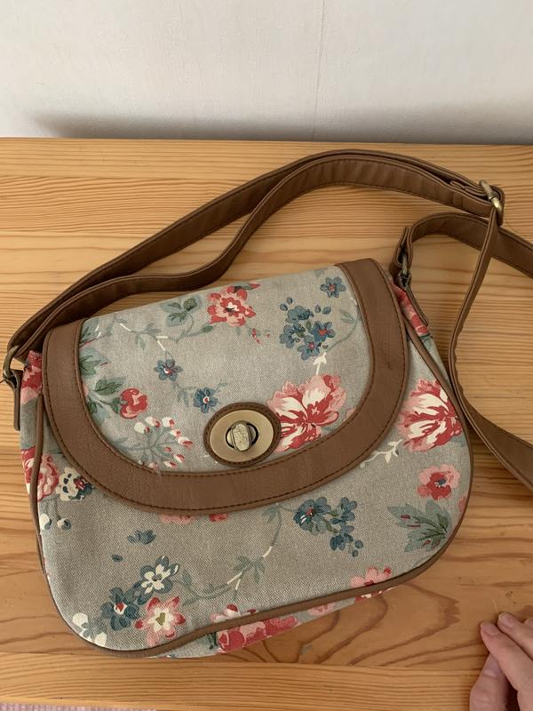 Цветастая сумка бренда Tu, небольшого размера, подойдет детям, ремешок регулируется. Активно носилась, есть потертости, можно легко очистить