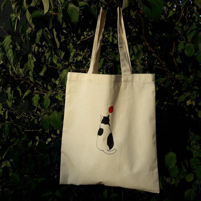 Шоппер, расписанный акриловыми красками для ткани, хлопок 100%, 35*40, ручка 57см