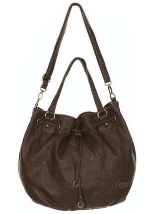 Сумка коричнева, текстура і структура шкіри, просто шикарна, дуже приємна, в середині одне велике відділення + маленька кишенька на телефон чи ключі і ще одна маленька на замочку для дріб‘язку. Дві короткі ручки + одна довга, затягується шнурочком і на магнітну кнопку, дуже якісна, зверху жодних нюансів, в середині трішки покошлатилась підкладка, але це легко виправити. При купівлі декількох речей знижки, дивіться інші оголошення.
