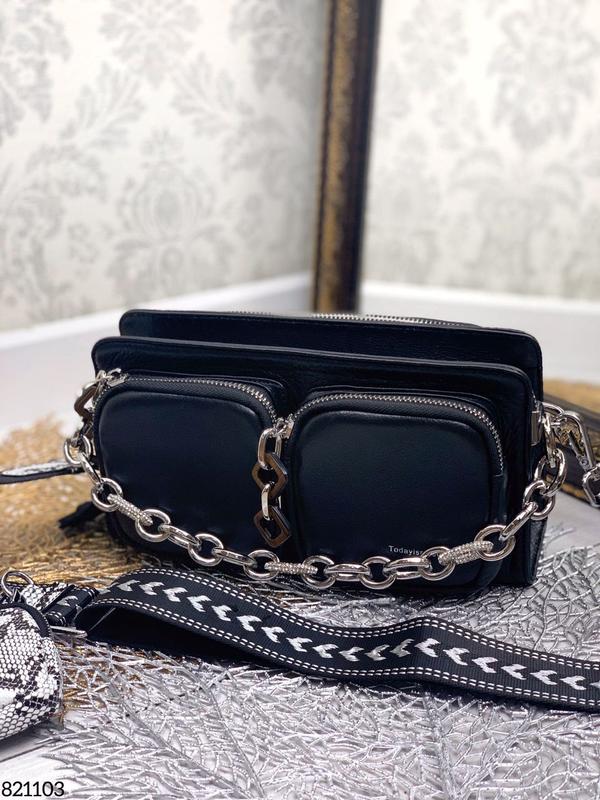 Сумка Перекид мягкая кожа форму отлично держит , фурнитура в серебре В комплекте : Ремешок Кожа длинный регулируется и широкая ручка удобная комбинированная с цепочками Размер: 30/20 Материал: натуральная кожа мягкая Люкс На змейке Цвет: зеленый и чёрный