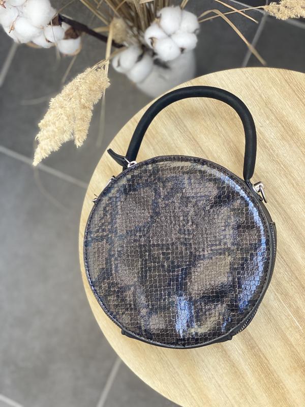 Новинка ⚫️Сумка кругла ⚫️Розмір:19Х18 ⚫️Матеріал :дорога екокожа ⚫️Кольори: сірий+принт пітон, чорний +принт пітон ⚫️Опис:одне відділення з замком довга ручка в комплекті