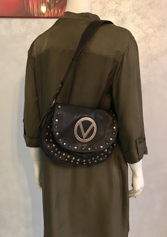 Темно-шоколадный цвет.Компактная сумка из эко-кожи, тактильно и визуально неотличимой от натуральной. Подкладка в тон в лого, Внутри одно отделение, пристенные карманчик на молнии и отделение для мобилки. Застегивается на молнию, верхний клапан на магнитной кнопке. Размеры сумки 30 на 22 см , высота ремешка 32 см ( полная длина 77 см ] Состояние идеальное , как новая. В употреблении пару раз.