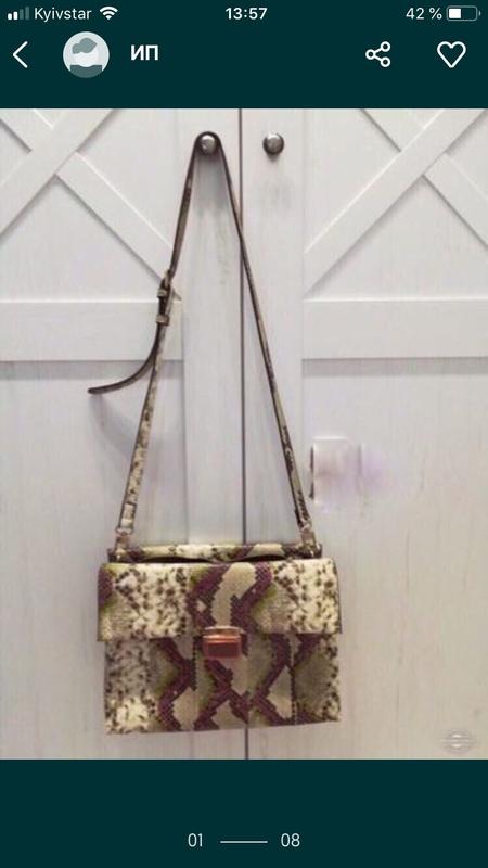 Цветная сумка Parfois через плечо под кожу питона. Качественные строчки и фурнитура. Внутри есть отделения и кармашки. Плечевой ремень съемный, регулируемый. Застежки: молния, замок. Габариты: 32х22х7,5 см. Португалия