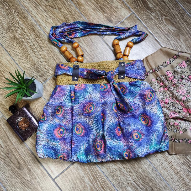 🦚Летняя текстильная сумочка с "павлиньим" принтом. Состояние новой, в носке не была. Очень мало весит. 📏 Ширина 42, высота 34, ручки 69