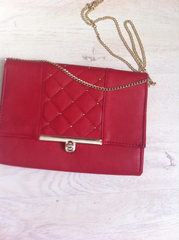 Сумочка с цепочкой , красного цвета . Длина 23, высота 16 см. Цепочка 114 см