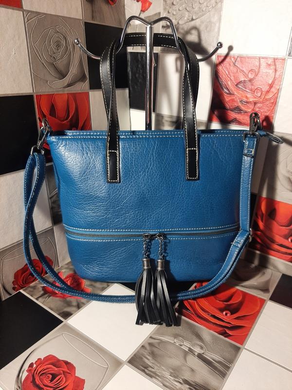 Сумочка из оооочень качественного кожзама не уступающей коже.Состояние идеальное без каких либо нюансов размер 30*22 очень удобная и красивая цвет бирюзовый