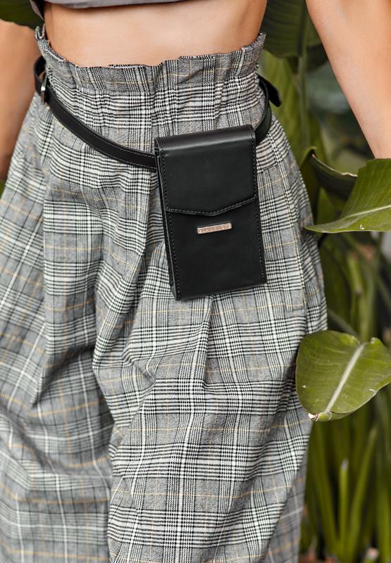 Вертикальная женская кожаная сумка mini черная поясная/кроссбоди