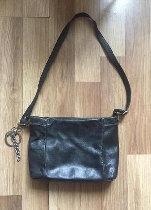 Сумка из качественной кожи , 2 отделения , в них ещё есть кармашки, 1 кармашек с задней стороны.Из нюансов- в одном отделении требуется замена молнии, она расходится