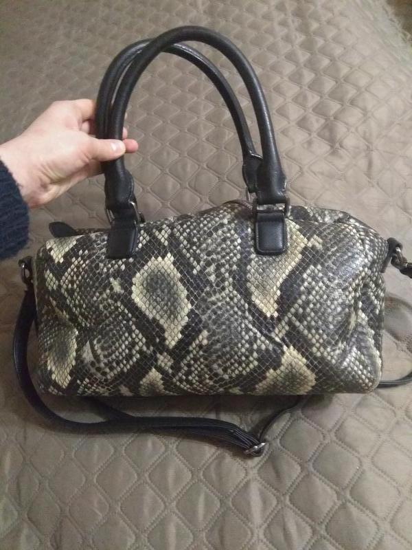 Сумка італійського бренду, матеріал замінник шкіри,без дефектів.Дві маленькі ручки і одна велика ,що знімається.Роміри ширина 34 см,висота 20 см