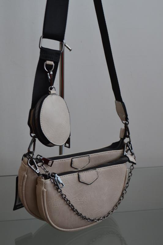 Размер большей сумочки сверху 24*15*4 (Длина*Высота*Глубина). Внутри врезной карманчик на молнии. Размер меньшей сумочки сверху 19*12*3 (Длина*Высота*Глубина). В комплекте круглый кошелечек диаметром 10см. Длинный регулируемый ремешок. Закрывается аксессуар на молнию. Фурнитура золотого цвета. . Сумка фабричного производства, изготовлены из качественной эко-кожи. Сделайте покупку прямо сейчас и Вы обязательно убедитесь в качестве нашего товара! Товар в наличии в ограниченном количестве!