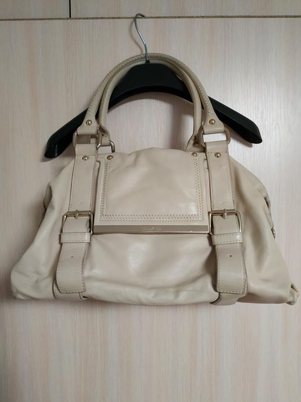 Натуральна кожана сумка. Сумка тілесного кольору.