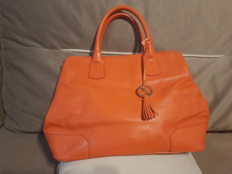 Оригинальная сумка итальянского производителя Varriale. Новая, без этикеток и упаковки. Натуральная кожа, качественная фурнитура, без дефектов/царапка. Практичная и многофункциональная, Есть дополнительный длинный ремень на плечо. Вместительная, но аккуратная при этом. Цвет - лососевый, не оранжевый. Размеры: высота 28см, длина по дну 38см, ширина по дну 16см.
