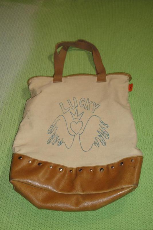 Сумка тканевая высота 40 см, ширина вверху 35 см, внизу 37 см, ширина дна 12 см, длина ручек 50 см. Нюанс, на обратной стороне нет одной заклепки видно на последнем фото.