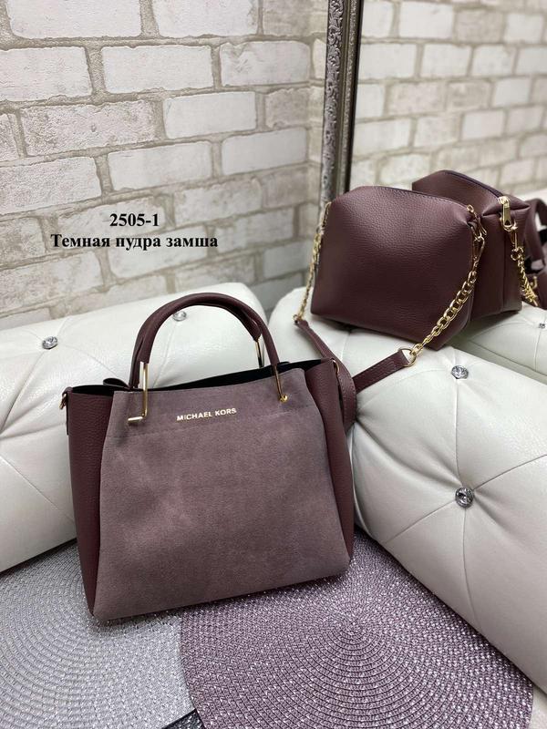 ❤ЕСТЬ НАЛОЖЕННЫЙ ПЛАТЕЖ Код 2505-1. Комплект: сумка + клатч. Нат.замша + шкірозамінник. 26 см ширина по дну. 31 см ширина вгорі.25 см висота. 15 см глибина. Довжина ремінця 115 см. Одне відділення на блискавці, всередині клатч. Розмір клатча: 18 * 18 * 10 см