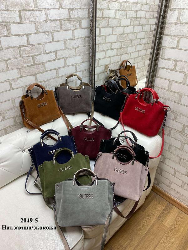 ❤Є післяплата Код 2049-5. Нат.замша /Екошкіра. Туреччина 🇹🇷. 27 см ширина по дну. 33 см ширина вгорі. 22 см висота.11 см глибина. Три відділи: середнє на блискавці, всередині кишеня для телефону і внутрішня кишеня на блискавці, інші два відділення на кнопці. Довжина плечового ременя 90 див. Фурнітура темне срібло.