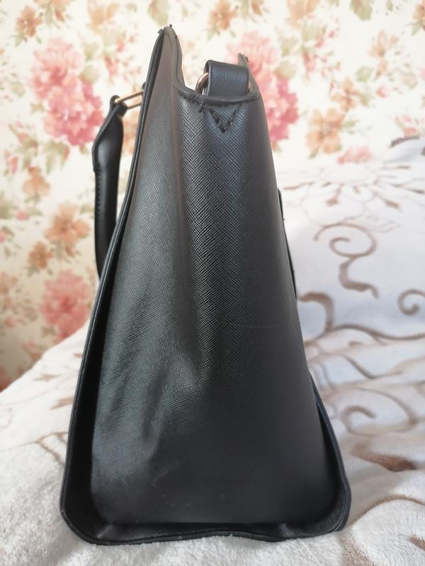 Сумка из эко кожи. Почти новая. Носила от силы 2-3 раза. Трещина отсутствует. Потертостей нет. Очень вместительная. Красивая внутрь одно большое отделение и несколько потайных. Высота 28 см. Ширина вверху 46см, ширина внизу 35. Длина ручки 38 см, высота ручки 17. Ширина дна 13.