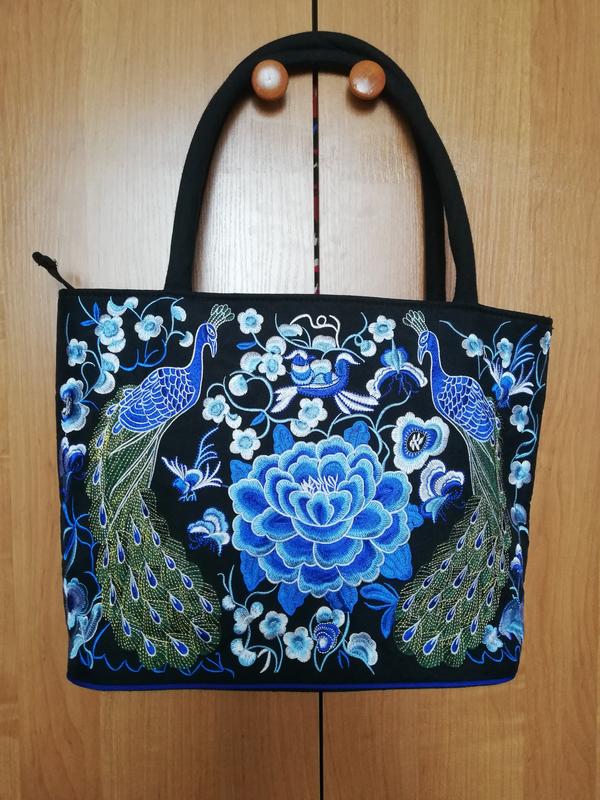 Очень стильная большая с фабричной вышивкой павлин. Внутри карман для телефона и для мелочей. Круто смотрится.
