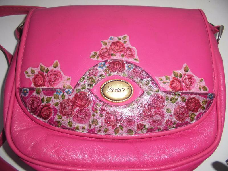 Цена 155 грн.Цвет малиновый.Материал кожа .Декупаж-цветы.Длина 20 см,ширина 5 см,высота 17 см,длина ручки 127 см