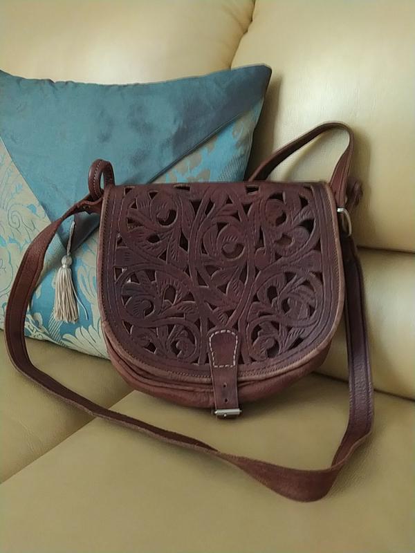 Крутая кожаная сумка ручной работы с резным узором. Новая. Ш. 27см. В. 26см. Г. 7см.